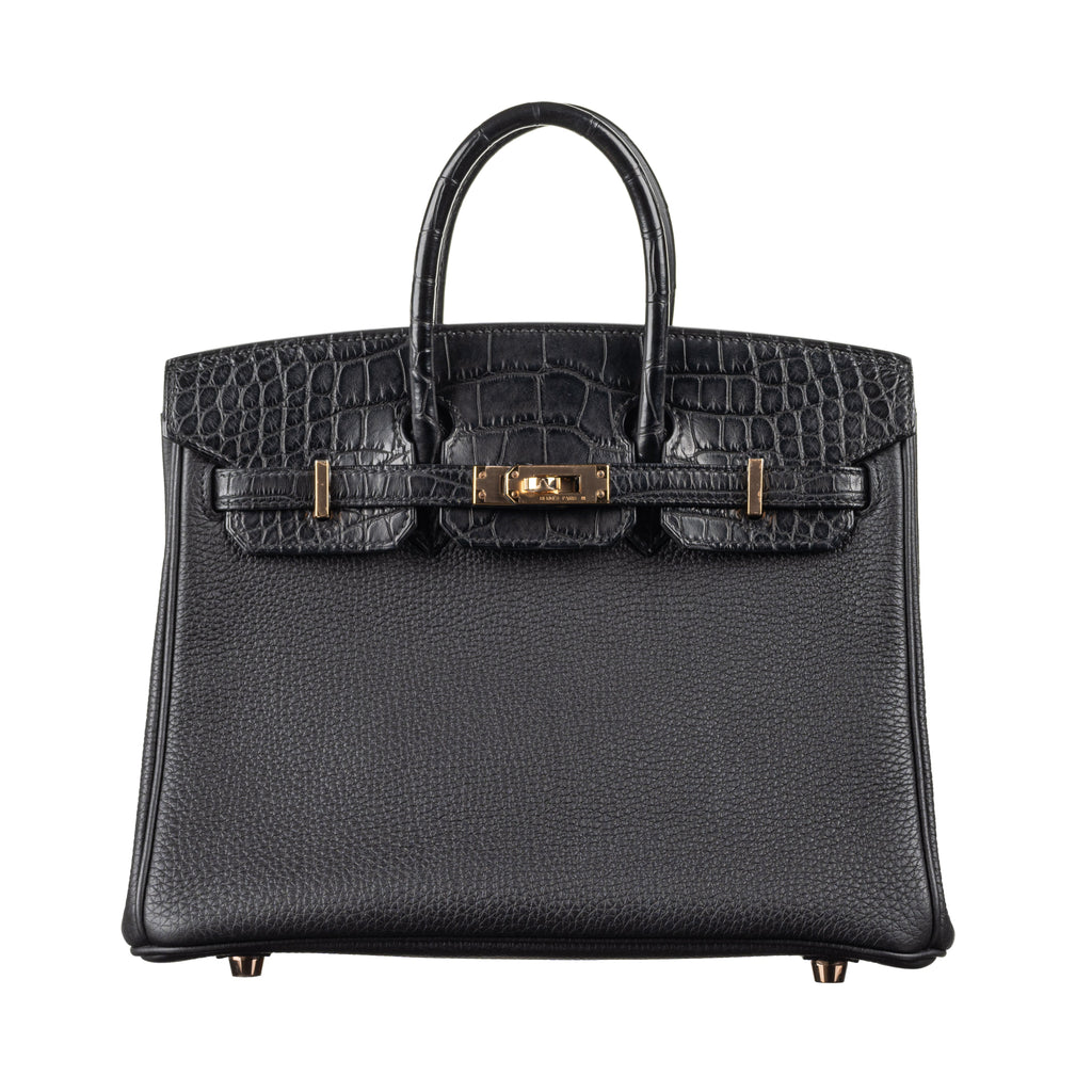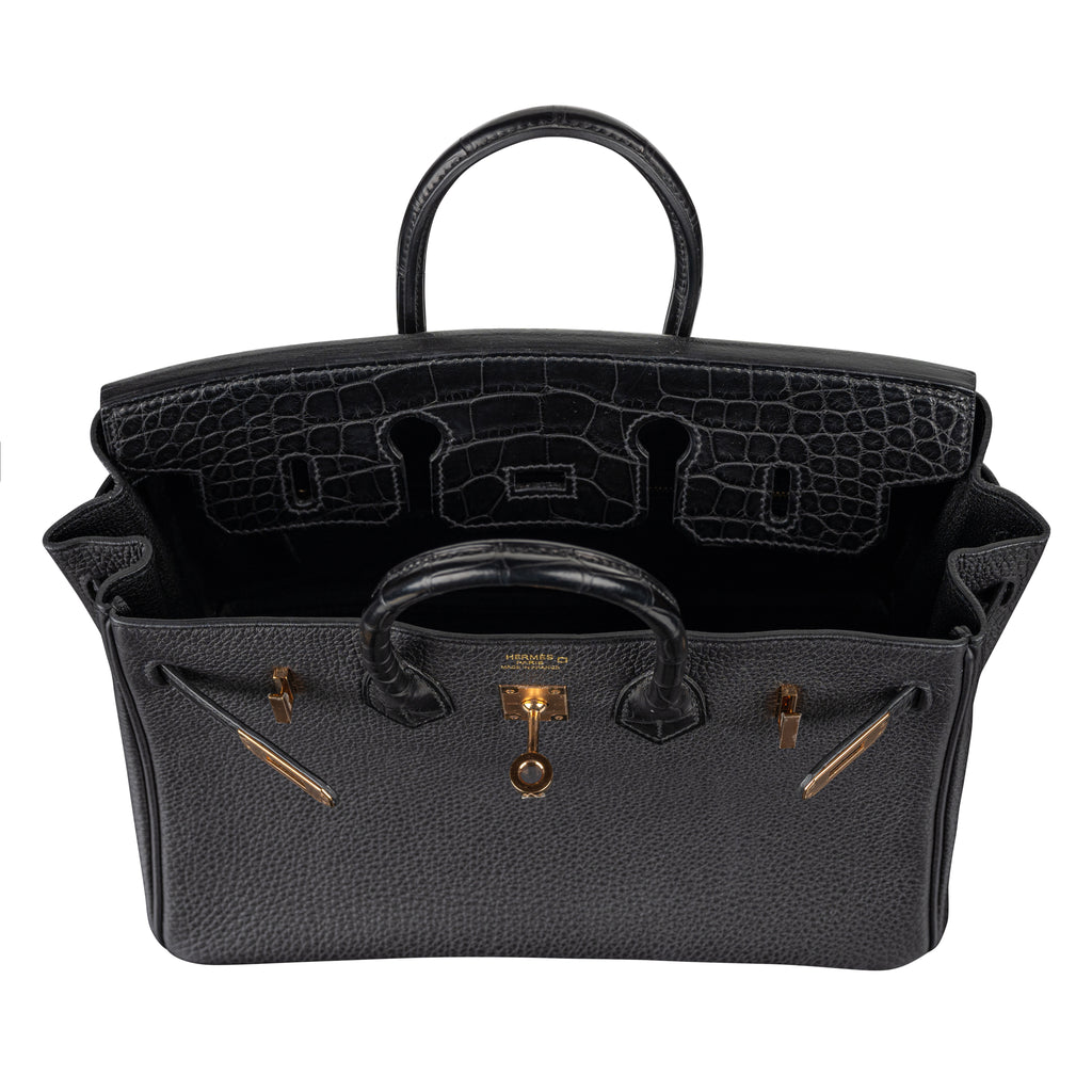 Hermès 25cm Birkin Touch Black Matte Alligator/Togo Leather Rose Gold Hardware