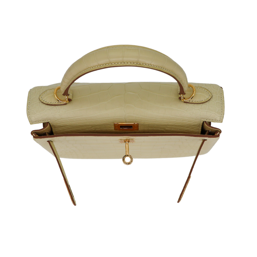 Hermès 25cm Kelly Retourne Vanille Matte Alligator Gold Hardware