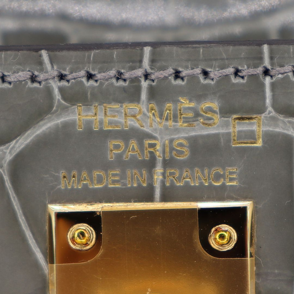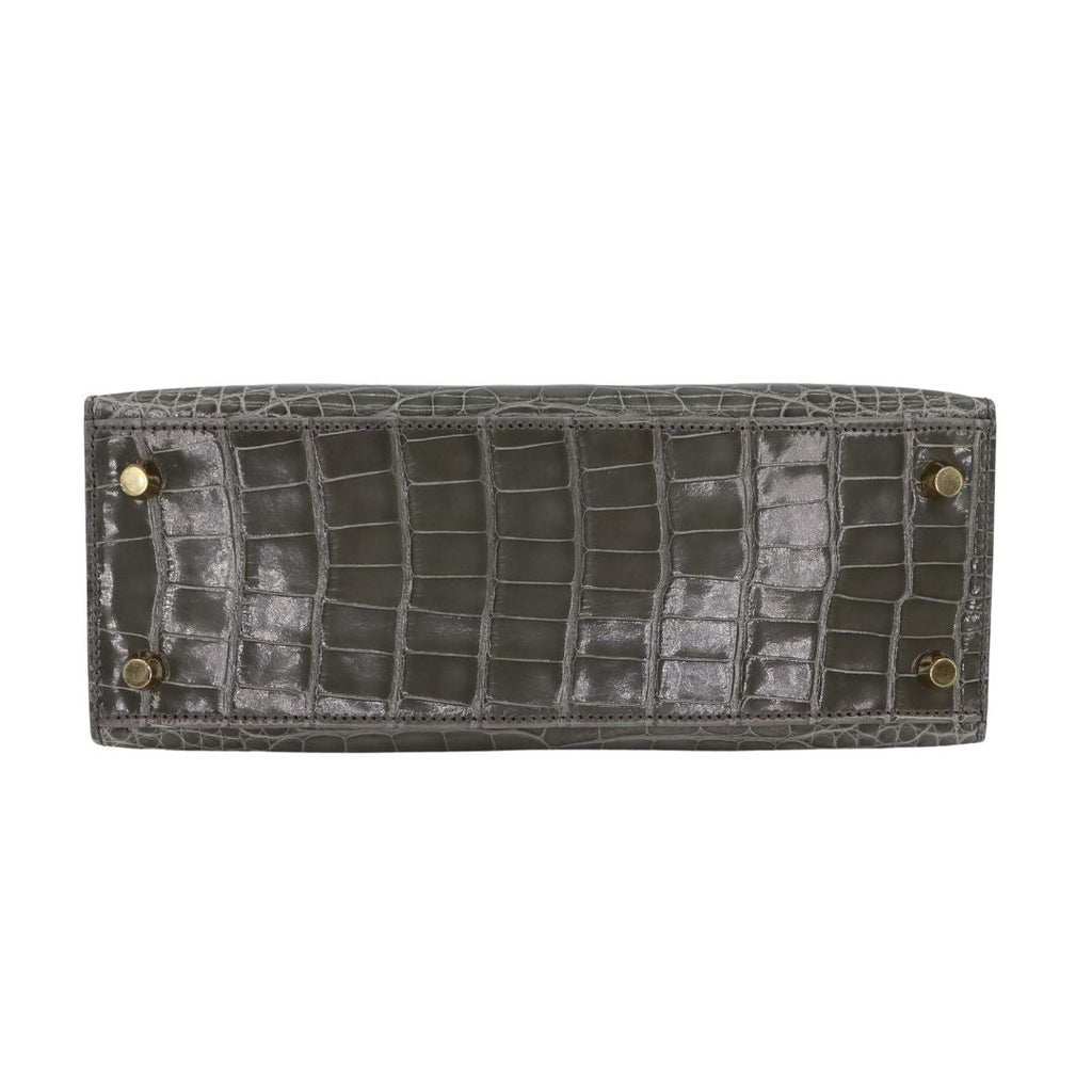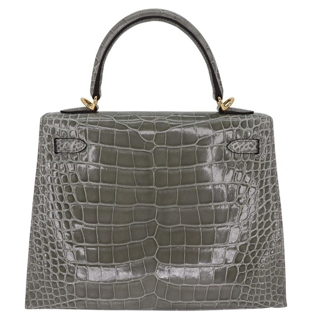 Hermès 25cm Kelly Sellier Gris Cement Shiny Alligator Gold Hardware