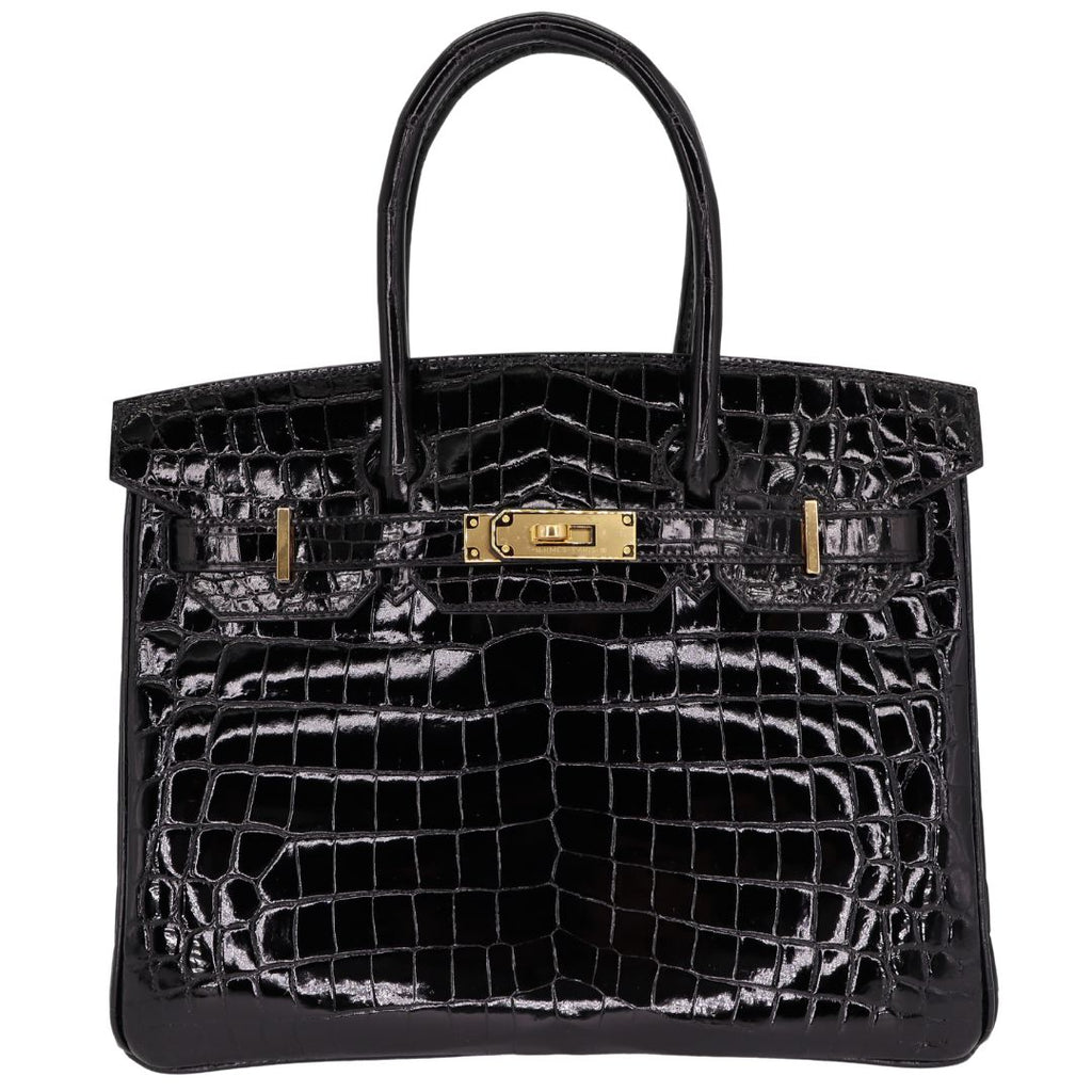 Hermès 30cm Birkin Black Shiny Niloticus Crocodile Gold Hardware