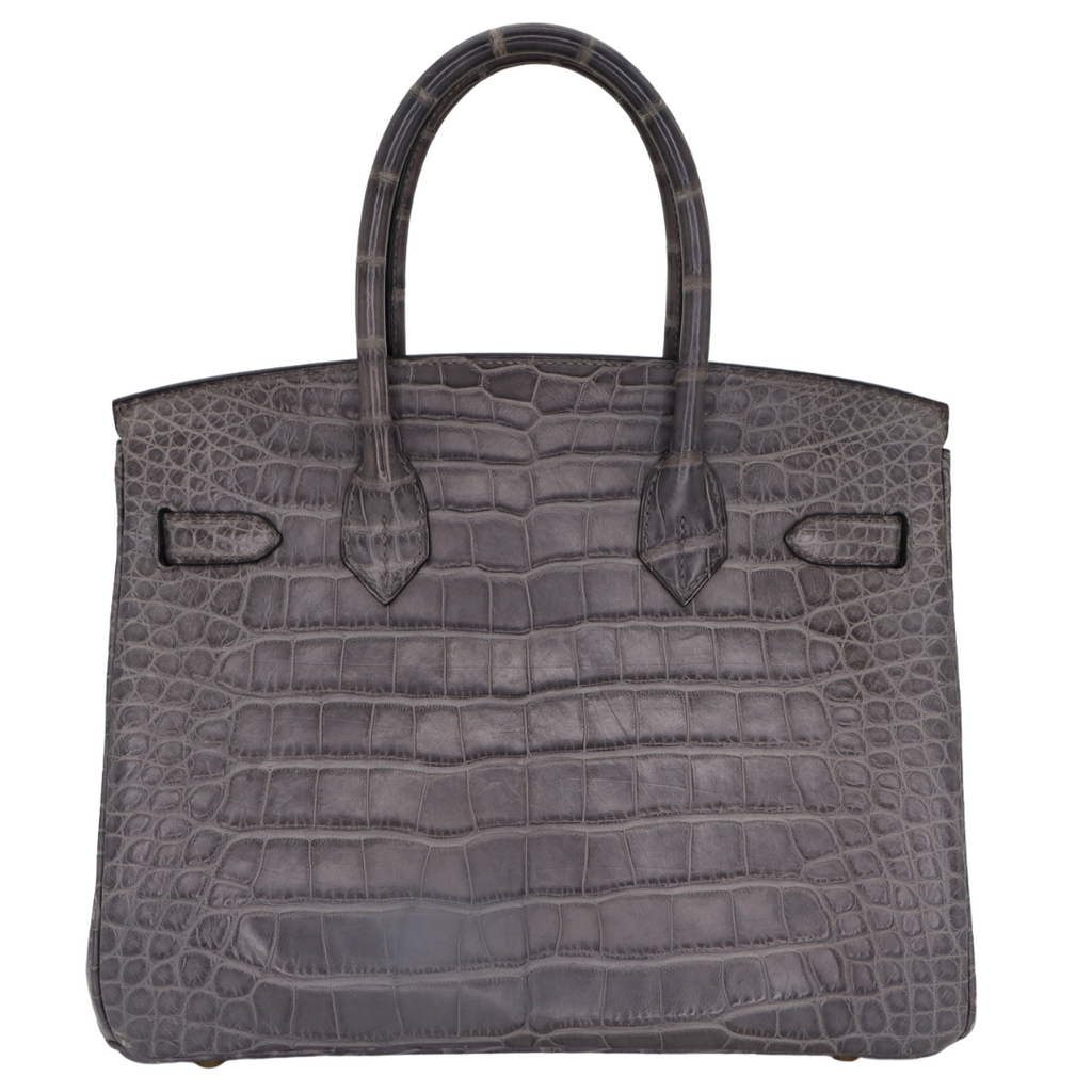 Hermès 30cm Birkin Gris de Paris Matte Alligator Gold Hardware
