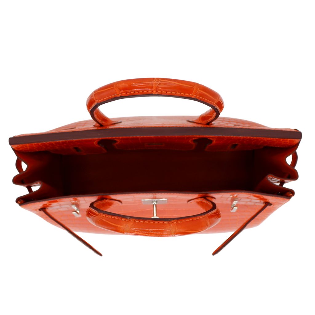Hermès 30cm Birkin Orange Shiny Porosus Crocodile Palladium Hardware