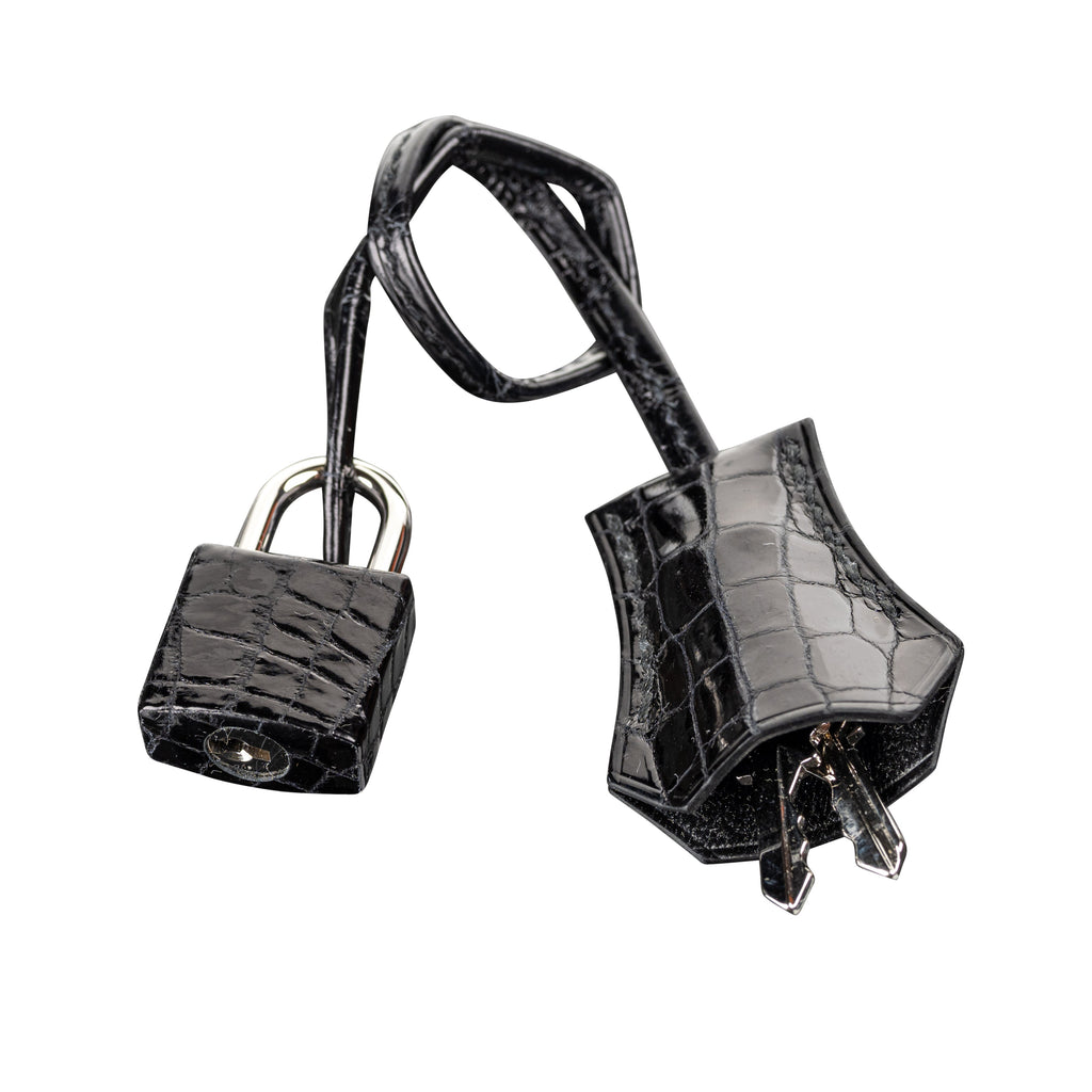 Hermès 32cm Kelly Black Shiny Niloticus Palladium Hardware