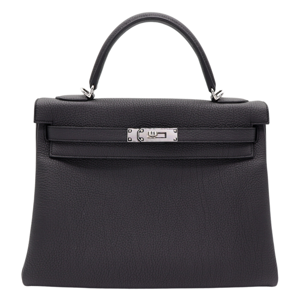 Hermès 32cm Kelly Retourne Black Togo Palladium Hardware