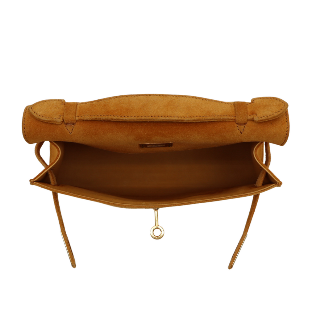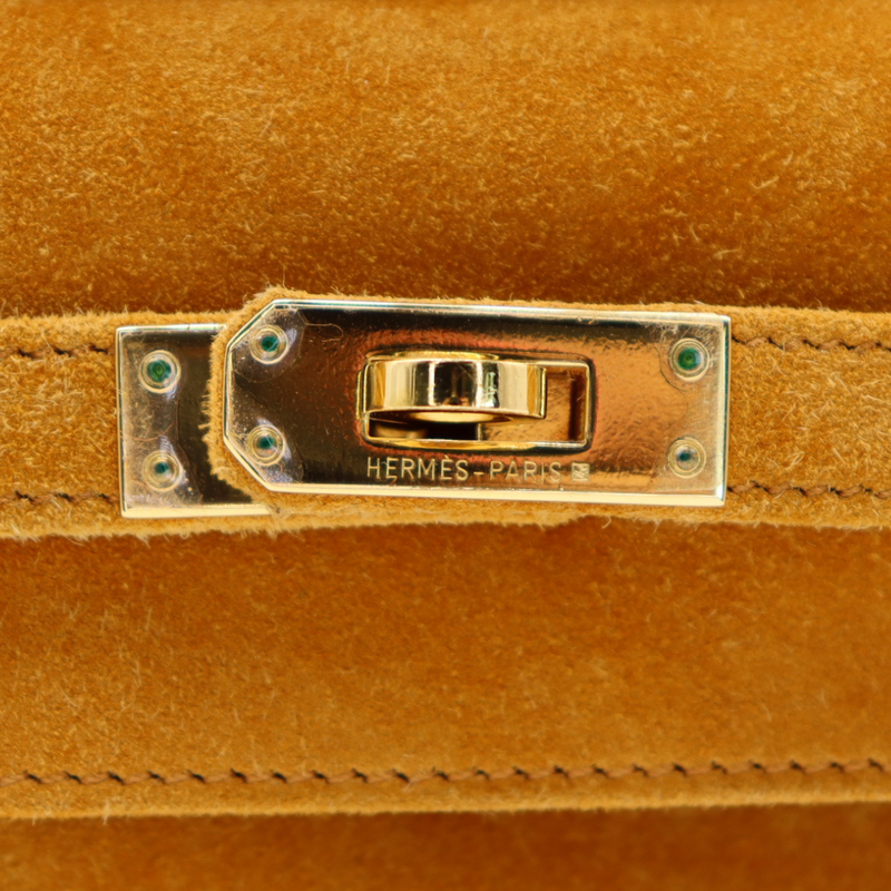 Hermès Kelly Pochette Doblis Jaune Suede Leather Gold Hardware