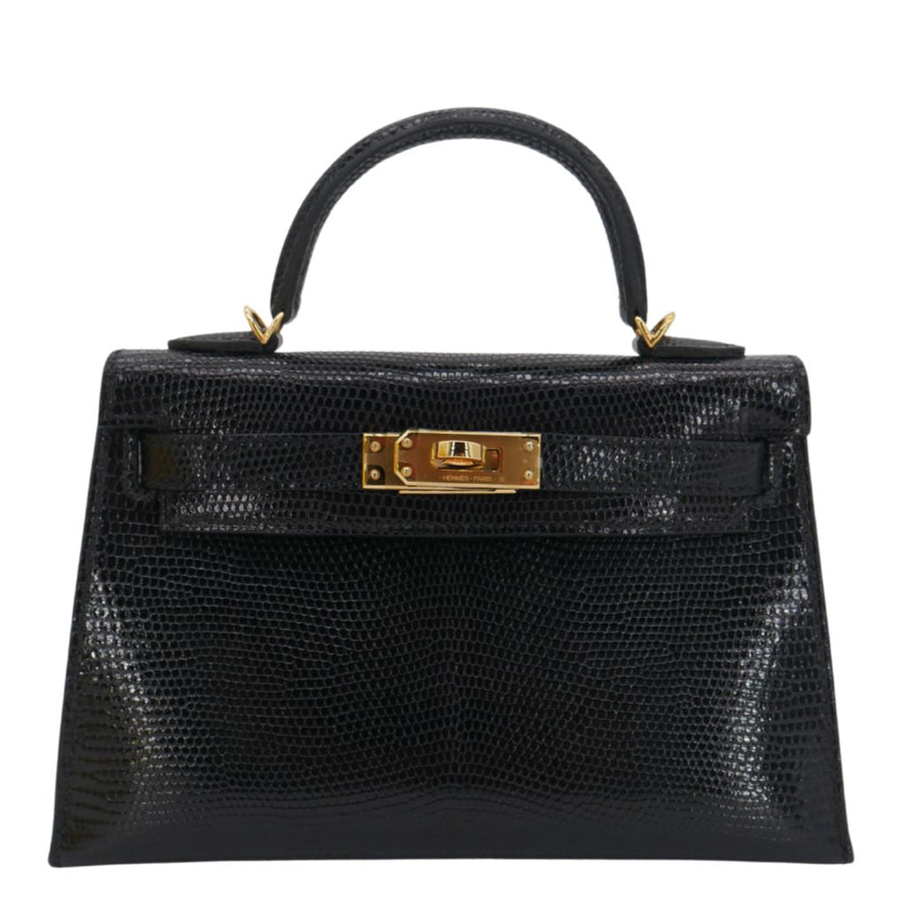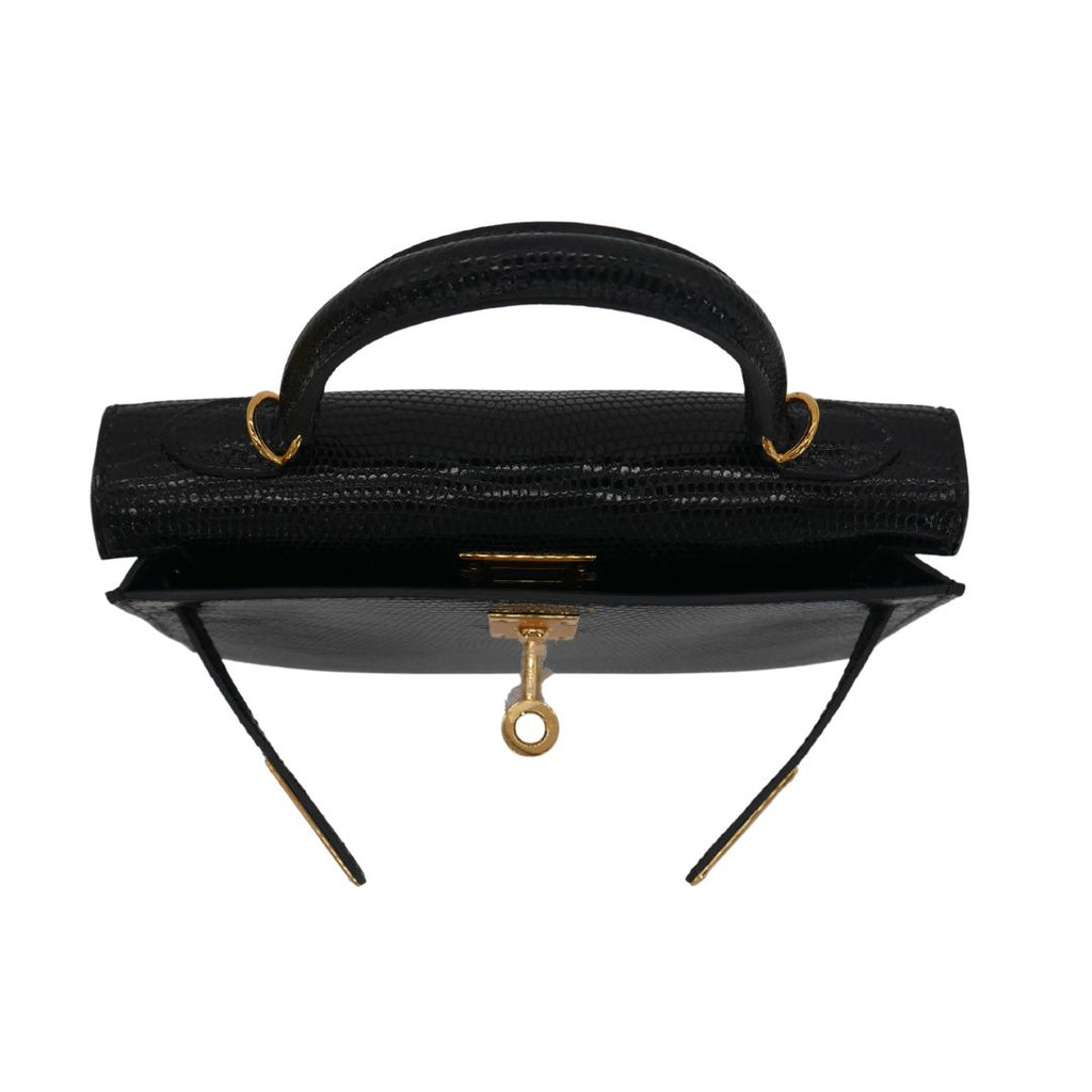 Hermès Kelly II Sellier Mini Black Shiny Lizard Gold Hardware